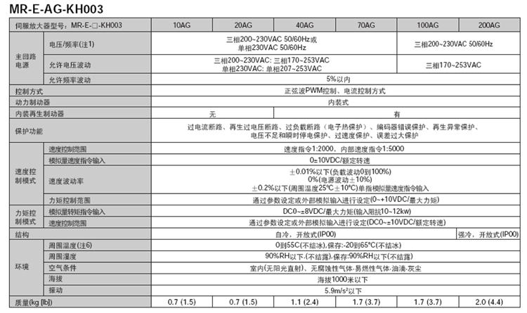 MR-E系列從控制模式上又可分成MR-E-A(位置控制模式和速度控制模式),MR-E-AG(模擬量輸入的速度控制模式和轉矩控制模式)。