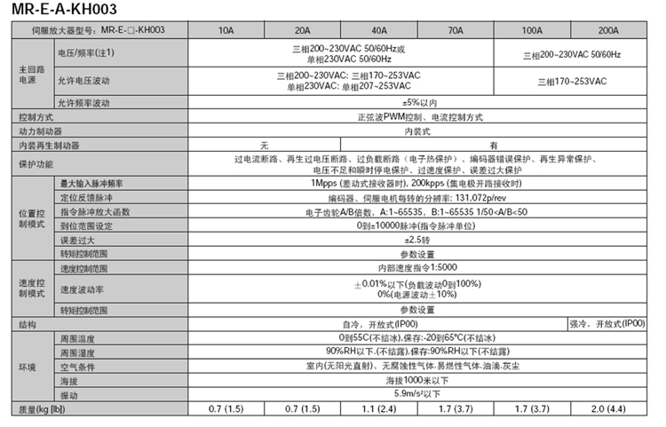 MR-E系列的配套伺服電機的最新編碼器采用16384脈沖/轉分辨率的增量位置編碼器。